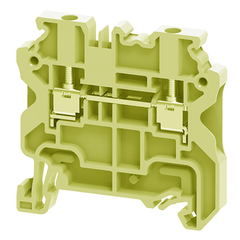 Проходная клемма, тип фиксации провода: винтовой, номинальное сечение: 2,5 мм кв., 24A, 800V, ширина: 6,1 мм, цвет: желтый, тип монтажа: DIN35