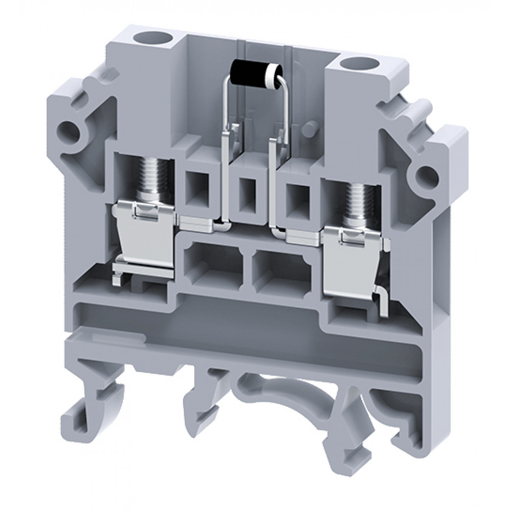 Клемма с диодом, схема L-R, тип фиксации провода: винтовой, номинальное сечение: 4 мм кв., 500V, ширина: 6 мм, цвет: серый, тип монтажа: DIN35