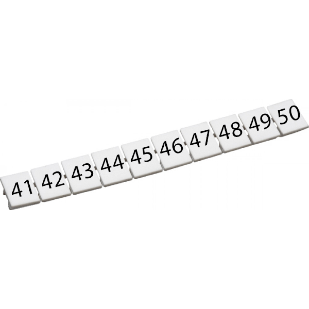 Маркировка для клемм CA509/K5/H/41-50, Маркировка для клемм шириной 5 мм, размер шильдика: 9,5*4,5 мм, 10 шильдиков, цвет: белый, нанесенные символы: 41-50 упаковка 100 шт.