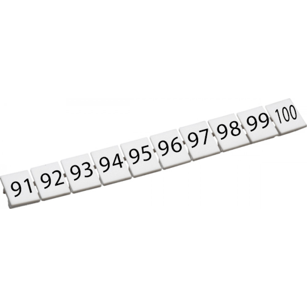 Маркировка для клемм шириной 5 мм, размер шильдика: 9,5*4,5 мм, 10 шильдиков, цвет: белый, нанесенные символы: 91-100 упаковка 100 шт.