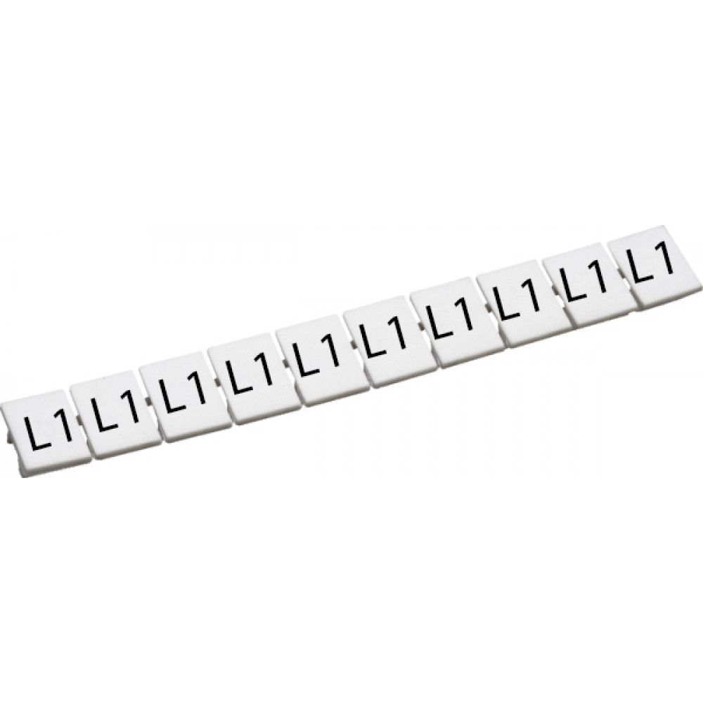 Маркировка для клемм шириной 5 мм, размер шильдика: 9,5*4,5 мм, 10 шильдиков, цвет: белый, нанесенные символы: L1 упаковка 100 шт.