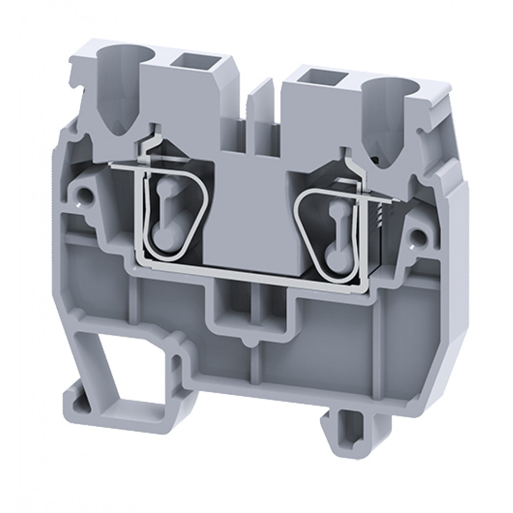 Проходная клемма, MINI, верхний подвод кабеля, 2 точки подключения, тип фиксации провода: пружинный, номинальное сечение: 2,5 мм кв., 24A, 1000V, ширина: 5 мм, цвет: серый, тип монтажа: DIN15