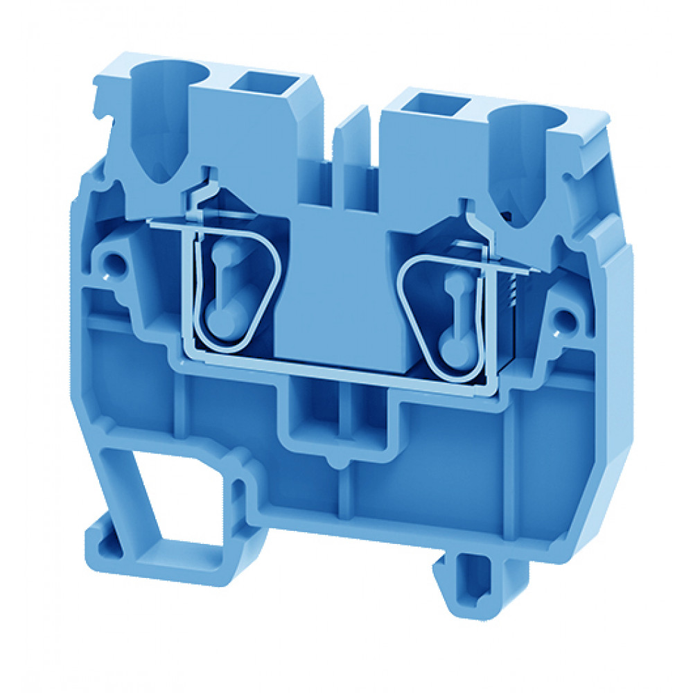 Проходная клемма, MINI, верхний подвод кабеля, 2 точки подключения, тип фиксации провода: пружинный, номинальное сечение: 2,5 мм кв., 24A, 500V, ширина: 5 мм,цвет: синий,тип монтажа: DIN15