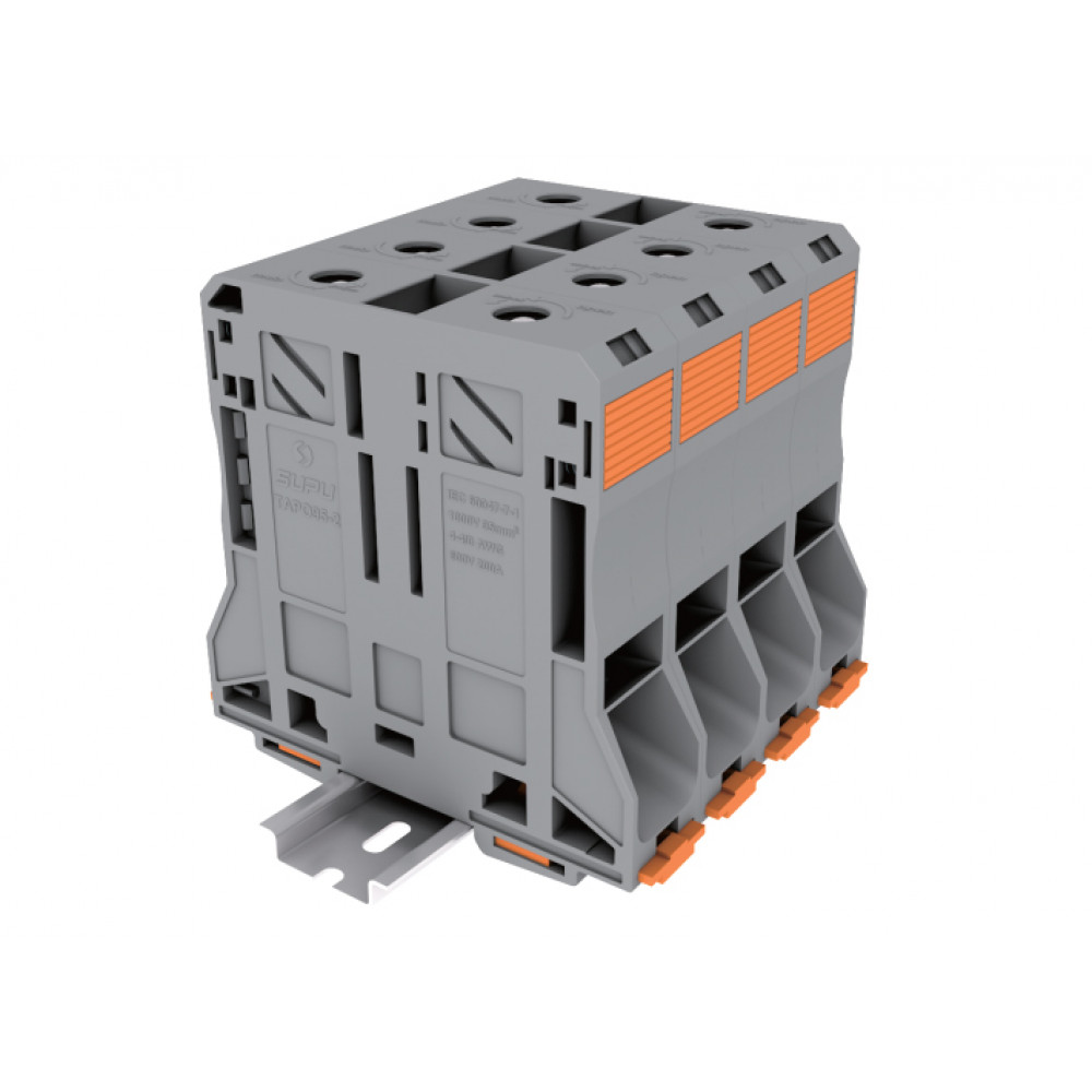 Проходная клемма TAPO95-2-GY, Проходная клемма, тип фиксации провода: пружинный, номинальное сечение: 95 мм кв., 232A, 1000V, ширина: 25 мм, цвет: серый, тип монтажа: DIN35