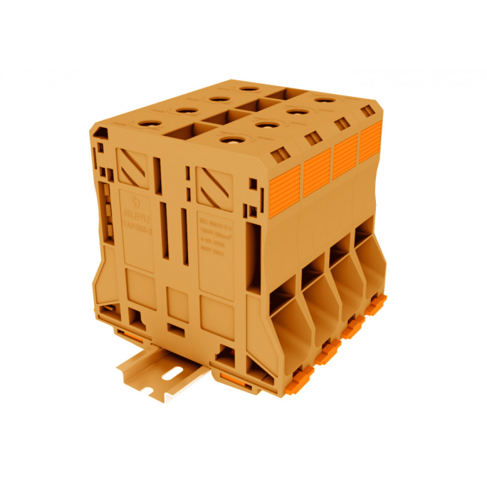 Проходная клемма TAPO95-2-OG, Проходная клемма, тип фиксации провода: пружинный, номинальное сечение: 95 мм кв., 232A, 1000V, ширина: 25 мм, цвет: оранжевый, тип монтажа: DIN35
