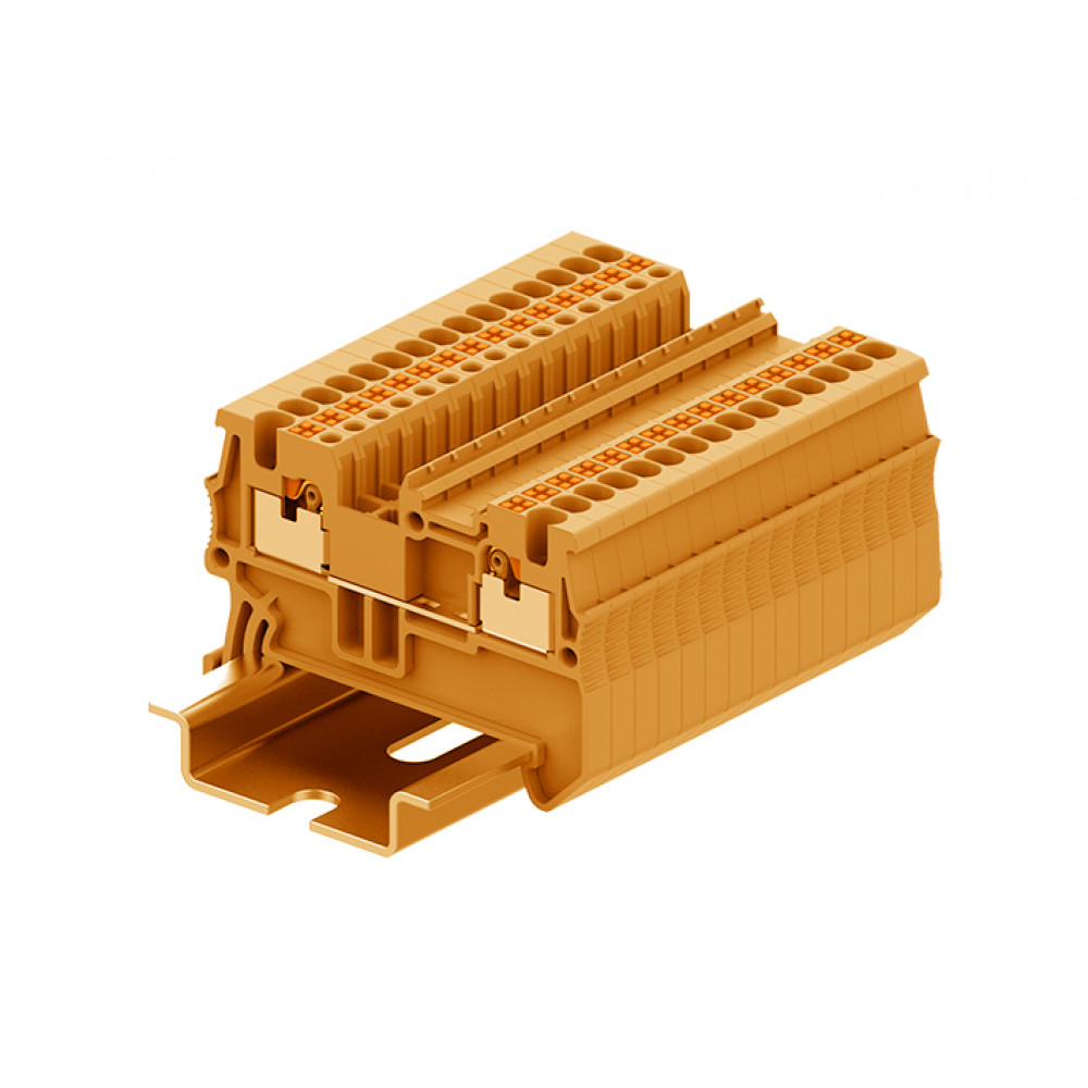 Проходная клемма, тип фиксации провода: Push-in, номинальное сечение: 1.5 мм кв., 17,5A, 500V, ширина: 3,5 мм, цвет: оранжевый, тип монтажа: DIN35