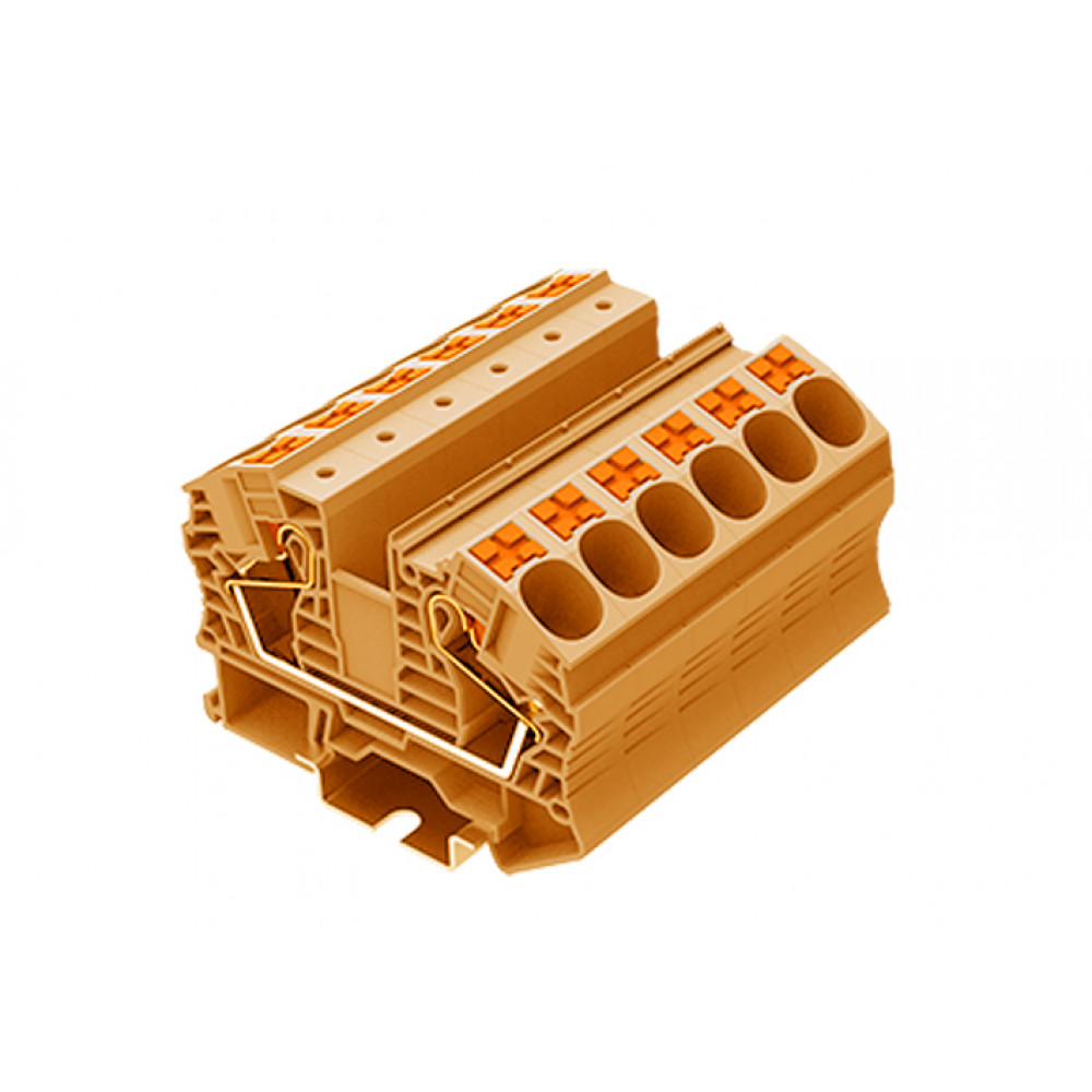 Проходная клемма, тип фиксации провода: Push-in, номинальное сечение: 16 мм кв., 76A, 1000V, ширина: 12,2 мм, цвет: оранжевый, тип монтажа: DIN35