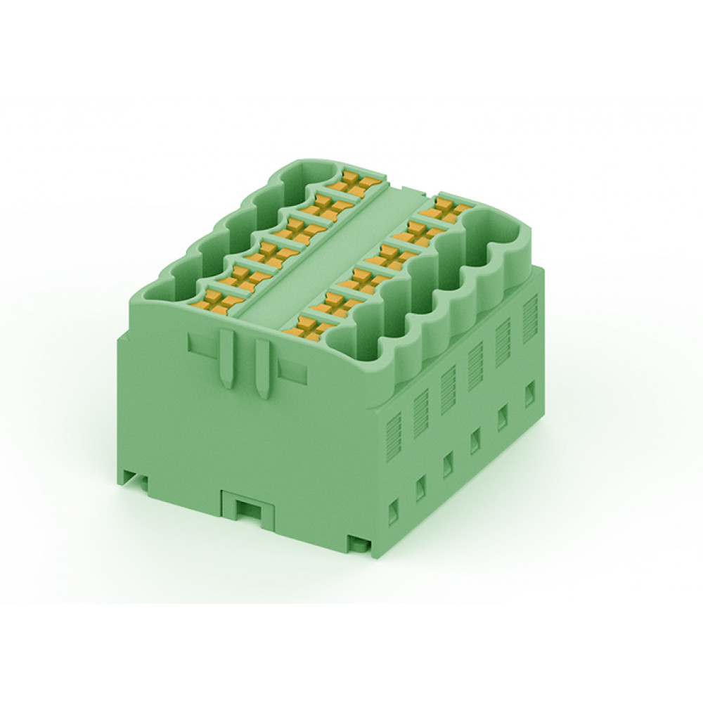 Проходной блок, 12 точек подключения, тип фиксации провода: push-in, номинальное сечение: 2,5 мм кв., 24A, 450V, цвет: зеленый