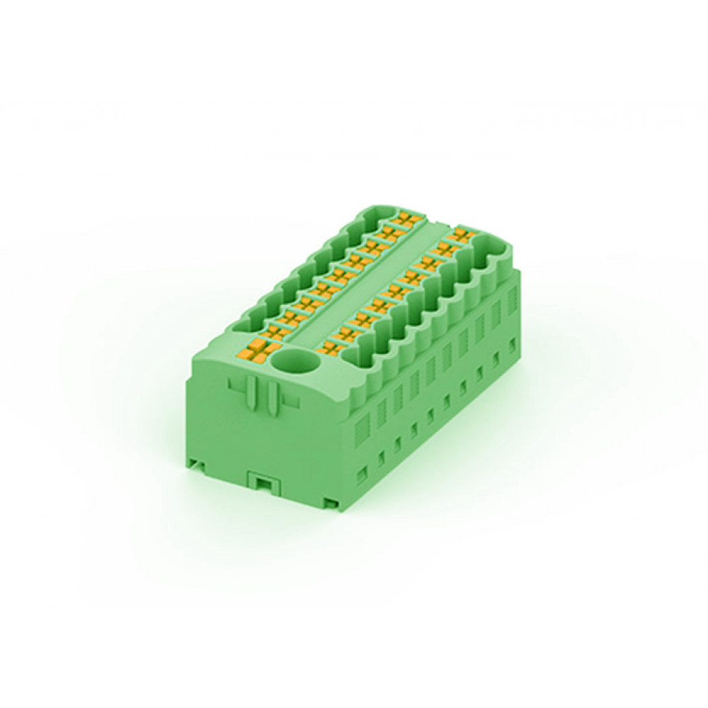 Распределительный блок TPA6/2.5-19-GN, Блок распределения потенциала, 19 точек подключения, тип фиксации провода: Push-in, номинальное сечение: 2,5/6 мм кв., 41A, 450V, цвет: зеленый