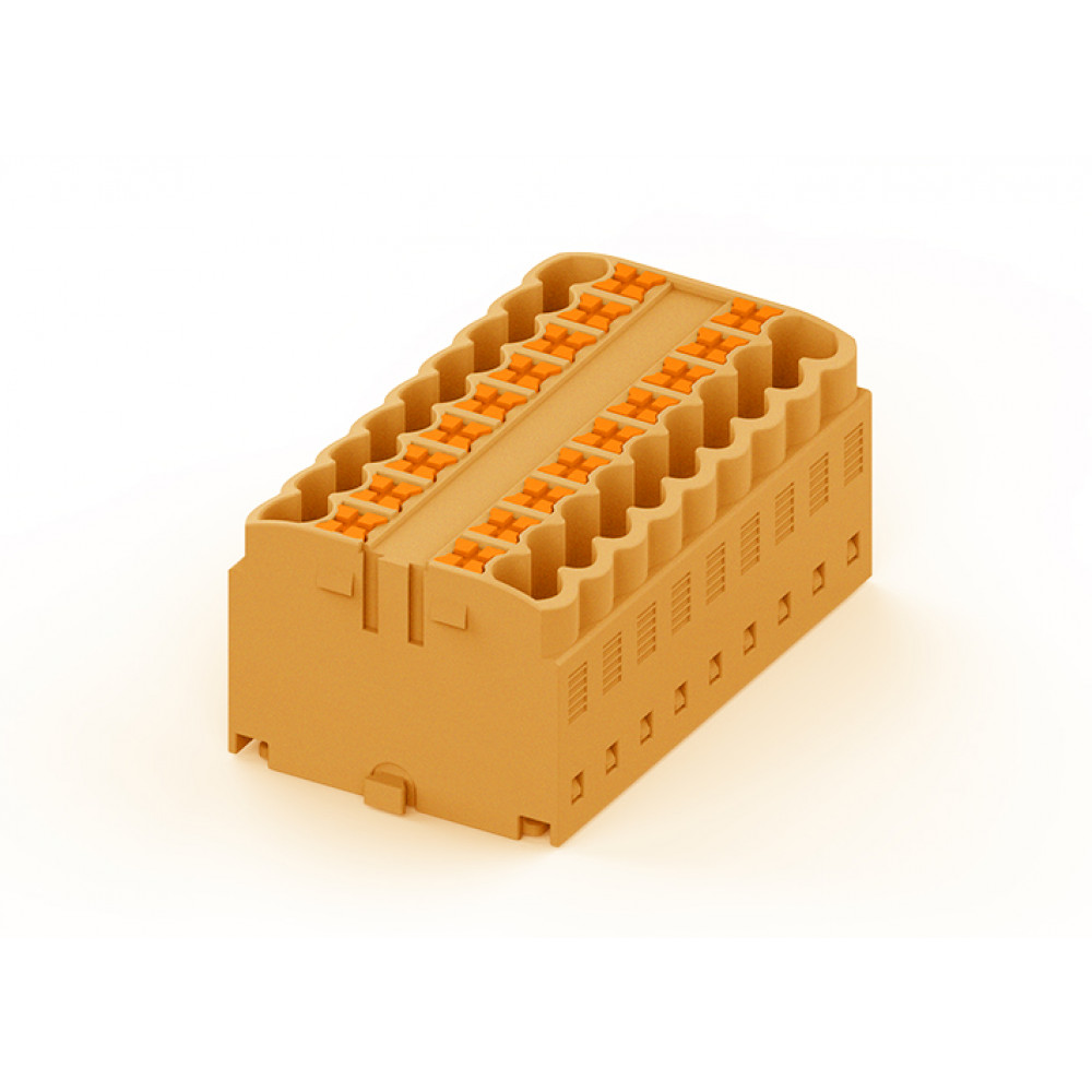 Проходной блок, 18 точек подключения, тип фиксации провода: push-in, номинальное сечение: 2,5 мм кв., 24A, 450V, цвет: оранжевый
