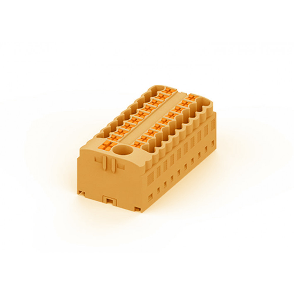Блок распределения потенциала, 19 точек подключения, тип фиксации провода: Push-in, номинальное сечение: 2,5/6 мм кв., 41A, 450V, цвет: оранжевый