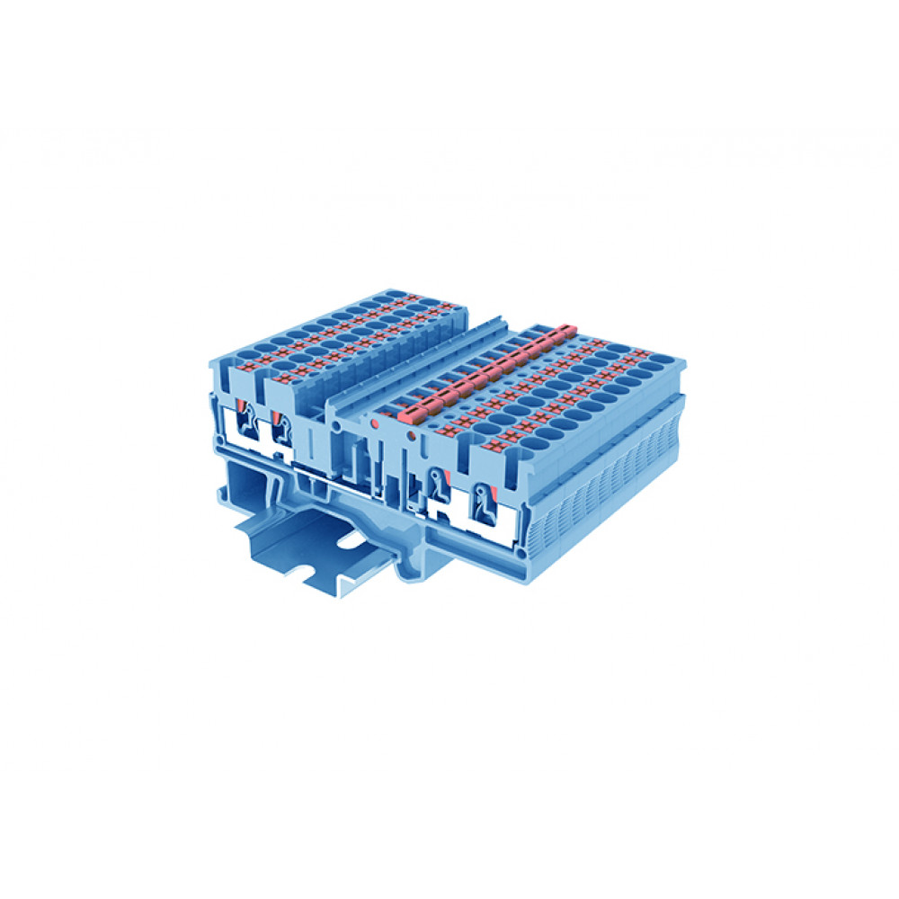 Клемма с ножевым размыкателем, 4 точки подключения, тип фиксации провода: Push-in, номинальное сечение: 2,5 мм кв., 20A, 400V, ширина: 5,2 мм, цвет: синий, тип монтажа: DIN35