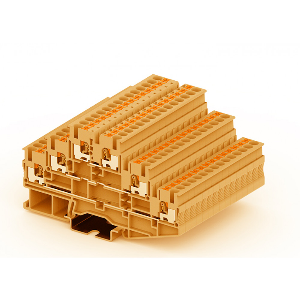 Этажная клемма TPT2.5-2-OG, Этажная клемма, 3 этажа, тип фиксации провода: Push-in, номинальное сечение: 2,5 мм кв., 20A, 500V, ширина: 5,2 мм, цвет: оранжевый, тип монтажа: DIN35