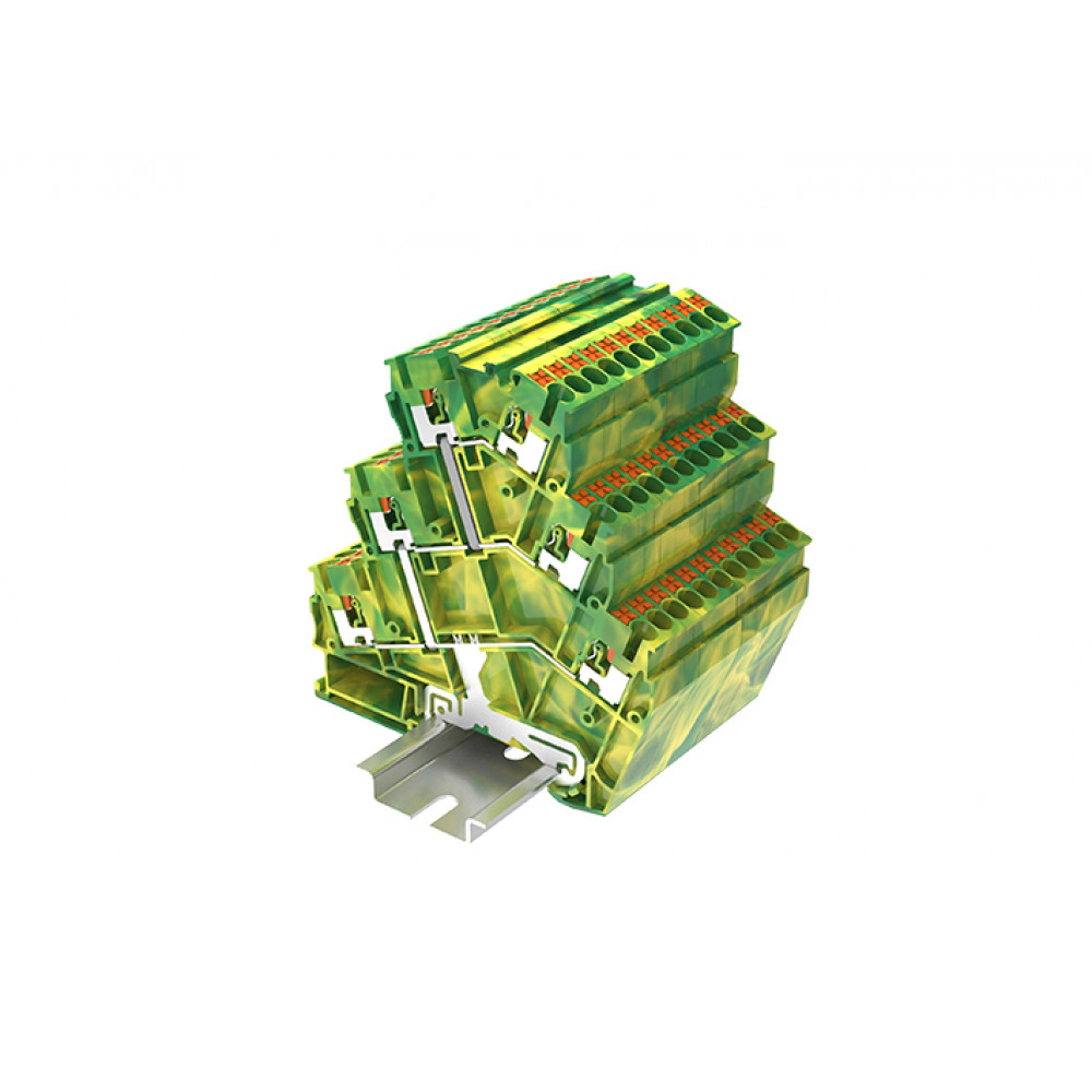 Доставка Заземляющая клемма TPTS2.5-2-PE , Заземляющая этажная клемма, 3 этажа, угловая, тип фиксации провода: Push-in, номинальное сечение: 2,5 мм кв., ширина: 5,2 мм, цвет: желто-зеленый, тип монтажа: DIN35