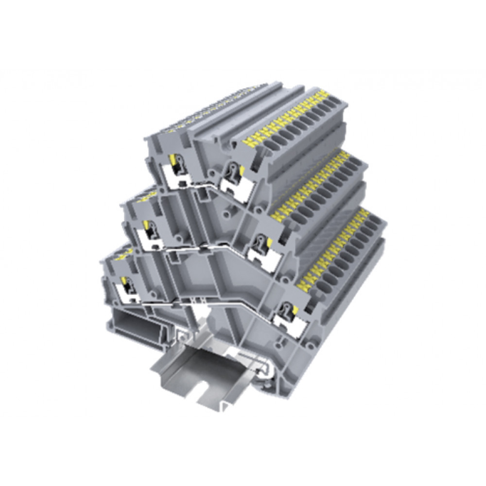 Доставка Этажная клемма TPTS2.5-2-PET , Этажная клемма, 3 этажа, угловая, нижний ряд с заземлением, тип фиксации провода: Push-in, номинальное сечение: 2,5 мм кв., ширина: 5,2 мм, цвет: серый, тип монтажа: DIN35