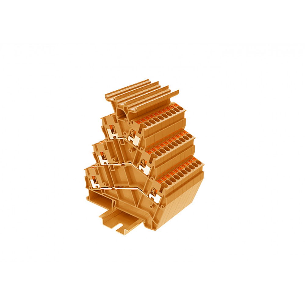 Этажная клемма TPTS2.5-2T-OG, Этажная клемма, 3 этажа, угловая, с держателем маркировки, с держателем маркировки, тип фиксации провода: Push-in, номинальное сечение: 2,5 мм кв., 20A, 500V, ширина: 5,2 мм, цвет: оранжевый, тип монтажа: DIN35