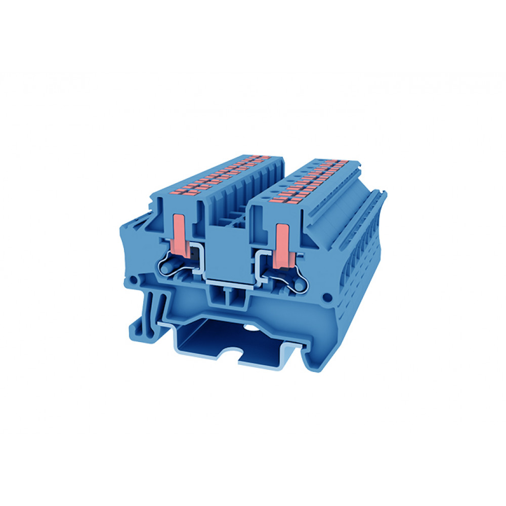 Проходная клемма TPV4-2-BU, Проходная клемма, боковой подвод кабеля, тип фиксации провода: Push-in, номинальное сечение: 4 мм кв., 32A, 1000V, ширина: 6,2 мм, цвет: синий, тип монтажа: DIN35