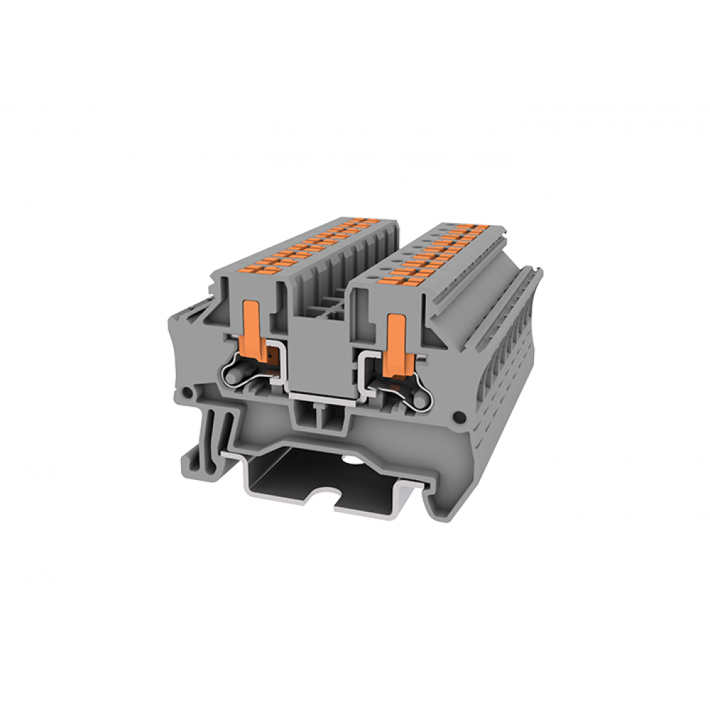 Проходная клемма TPV4-2-GY, Проходная клемма, боковой подвод кабеля, тип фиксации провода: Push-in, номинальное сечение: 4 мм кв., 32A, 1000V, ширина: 6,2 мм, цвет: серый, тип монтажа: DIN35