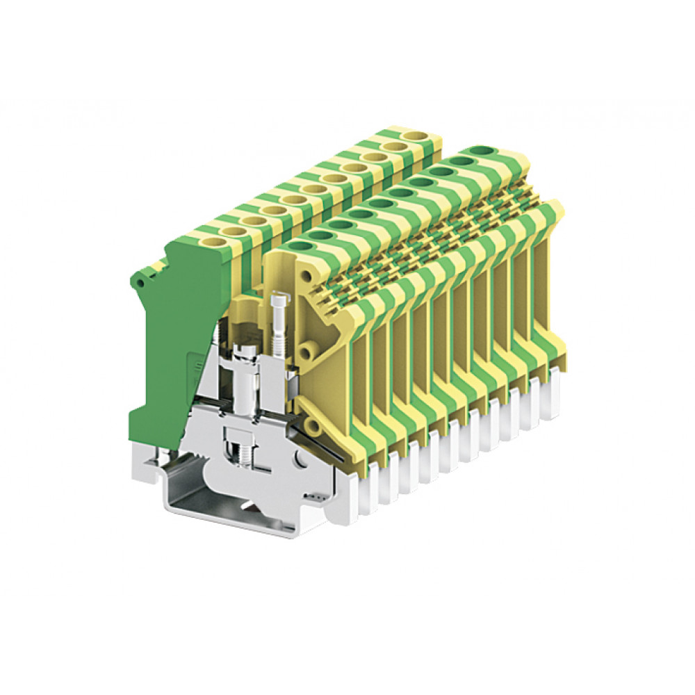 Заземляющая клемма, тип фиксации провода: винтовой, номинальное сечение: 4 мм кв., ширина: 6 мм, цвет: желто-зеленый, тип монтажа: DIN35