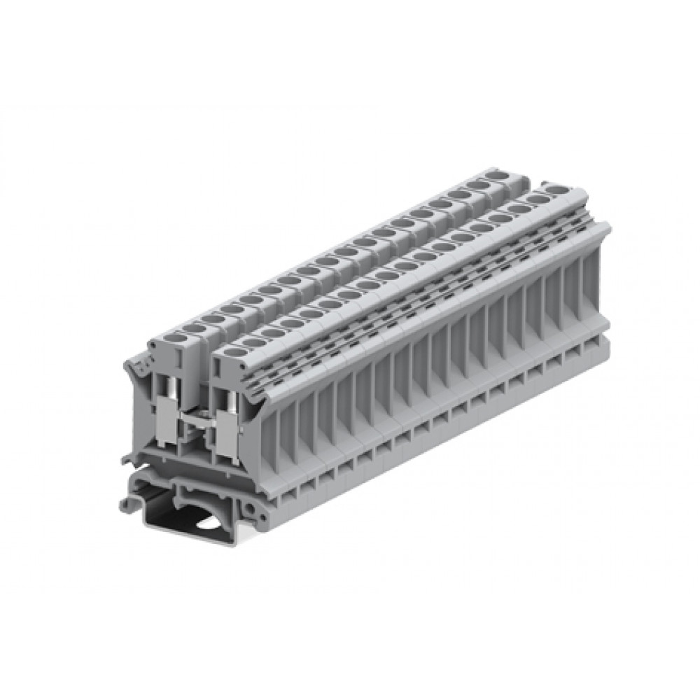 Проходная клемма, тип фиксации провода: винтовой, номинальное сечение: 6 мм кв., 41A, 800V, ширина: 8,2 мм, цвет: серый, тип монтажа: DIN35, винтовая перемычка, зажимная клетка: латунь