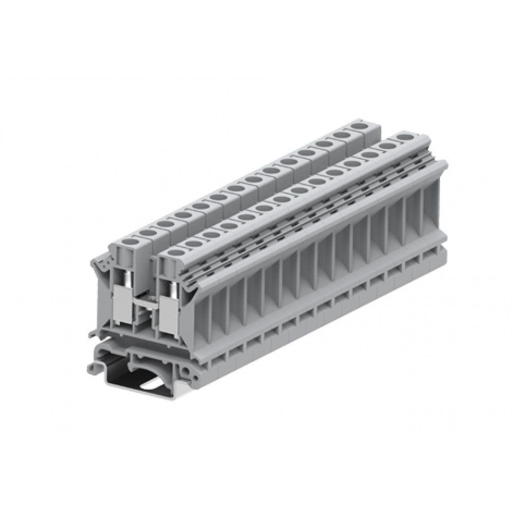 Проходная клемма, тип фиксации провода: винтовой, номинальное сечение: 10 мм кв., 57A, 1000V, ширина: 10 мм, цвет: серый, тип монтажа: DIN35, втычная перемычка,