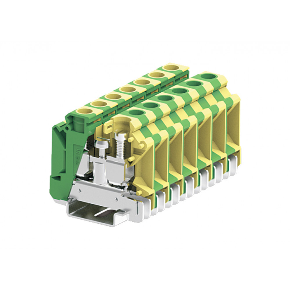 Заземляющая клемма, тип фиксации провода: винтовой, номинальное сечение: 16 мм кв., 800V, ширина: 10 мм, цвет: желто-зеленый, тип монтажа: DIN35