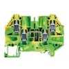 Заземляющая клемма, 4 точки подключения, тип фиксации провода: винтовой, номинальное сечение: 4 мм кв., ширина: 6,2 мм, цвет: желто-зеленый, тип монтажа: DIN35