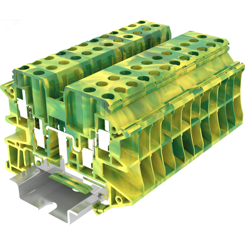 Заземляющая клемма, тип фиксации провода: винтовой, номинальное сечение: 4 мм кв., 500V, ширина: 6 мм, цвет: желто-зеленый, тип монтажа: DIN35