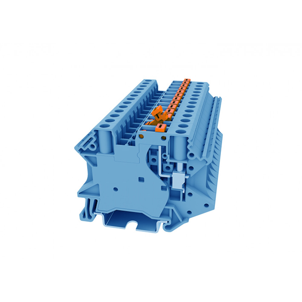 Клемма с ножевым размыкателем, тип фиксации провода: винтовой, номинальное сечение: 4 мм кв., 16A, 800V, ширина: 6,2 мм, цвет: синий, тип монтажа: DIN35, винтовая перемычка, зажимная клетка: латунь