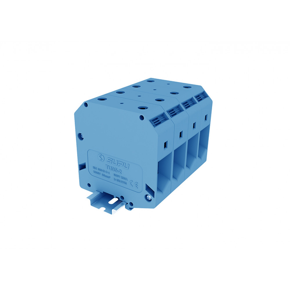 Проходная клемма TU95-2-BU, Проходная клемма, тип фиксации провода: винтовой, номинальное сечение: 95 мм кв., 232A, 1000V, ширина: 25 мм, цвет: синий, тип монтажа: DIN35