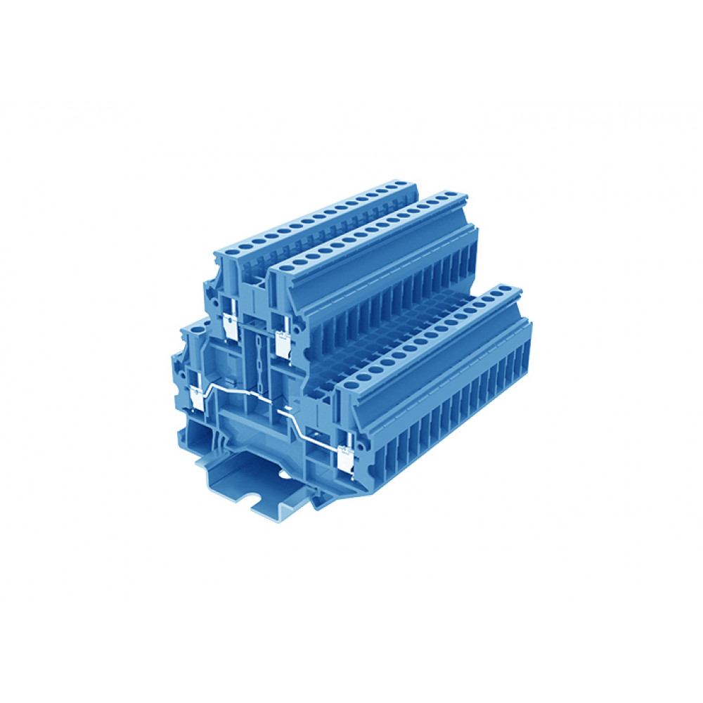 Этажная клемма, 2 этажа, тип фиксации провода: винтовой, номинальное сечение: 2,5 мм кв., 24A, 800V, ширина: 5,2 мм, цвет: синий, тип монтажа: DIN35