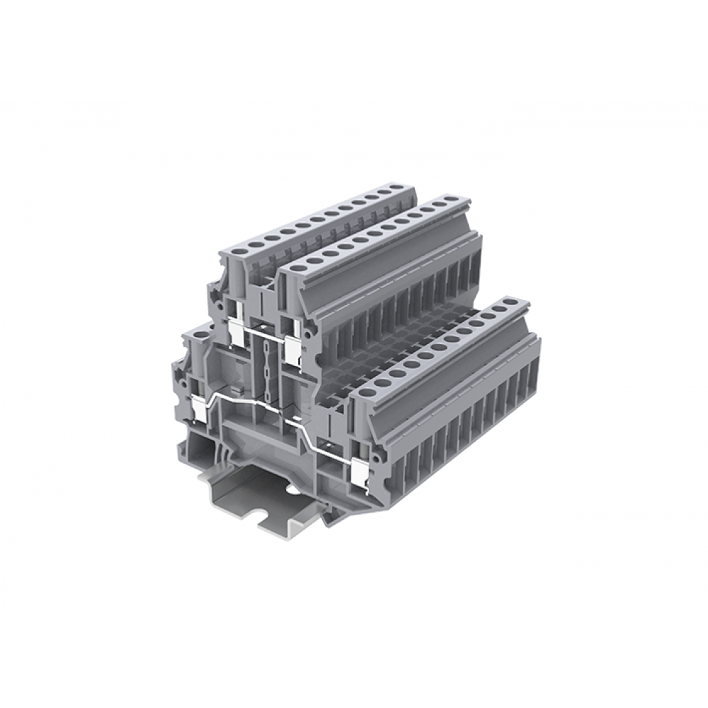 Этажная клемма, 2 этажа, тип фиксации провода: винтовой, номинальное сечение: 4 мм кв., 32A, 400V, ширина: 6 мм, цвет: серый, тип монтажа: DIN35