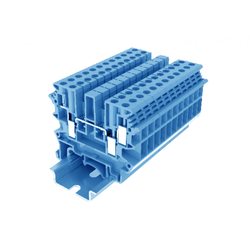Проходная клемма, 4 точки подключения, тип фиксации провода: винтовой, номинальное сечение: 4 мм кв., 32A, 630V, ширина: 6,2 мм, цвет: синий, тип монтажа: DIN35