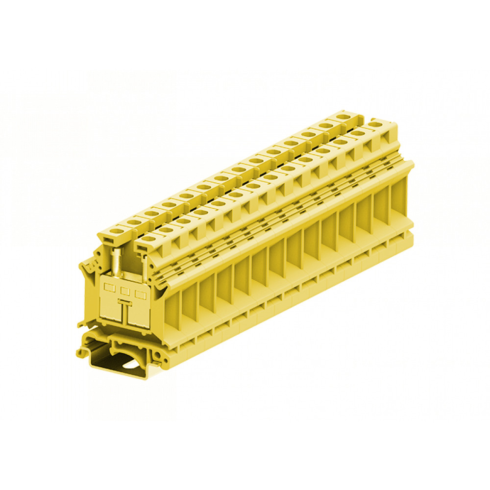 Проходная клемма, тип фиксации провода: винтовой, номинальное сечение: 16 мм кв., 76A, 800V, ширина: 12 мм, цвет: желтый, тип монтажа: DIN35