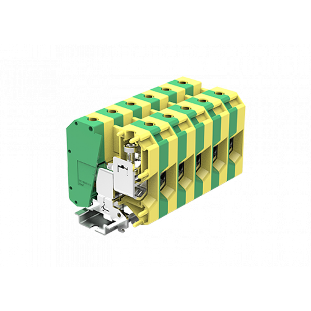 Заземляющая клемма, тип фиксации провода: винтовой, номинальное сечение: 50 мм кв., ширина: мм, цвет: желто-зеленый, тип монтажа: DIN35