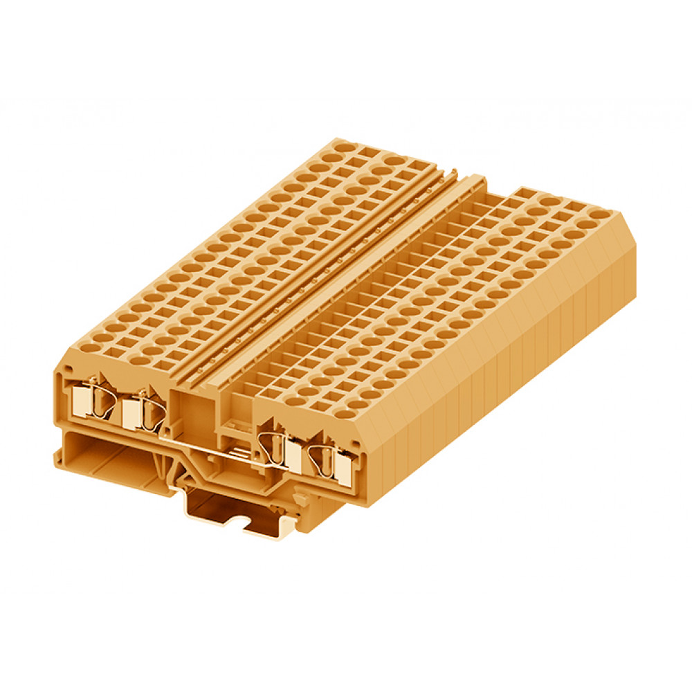 Проходная клемма, 4 точки подключения, тип фиксации провода: пружинный, номинальное сечение: 4 мм кв., 32A, 800V, ширина: 6 мм, цвет: оранжевый, тип монтажа: DIN35
