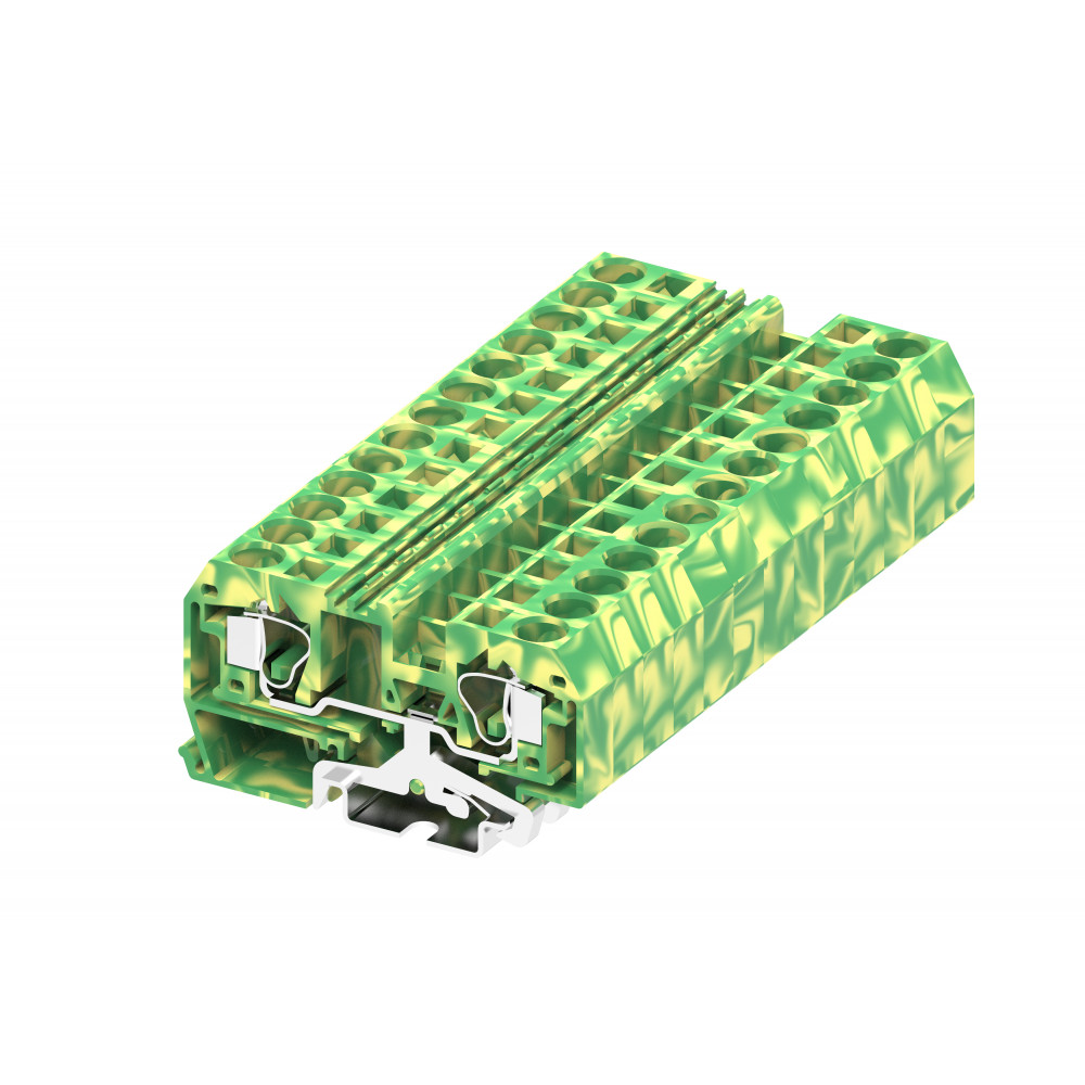 Заземляющая клемма, 4 точки подключения, тип фиксации провода: пружинный, номинальное сечение: 4 мм кв., 800V, ширина: 6,2 мм, цвет: желто-зеленый, тип монтажа: DIN35