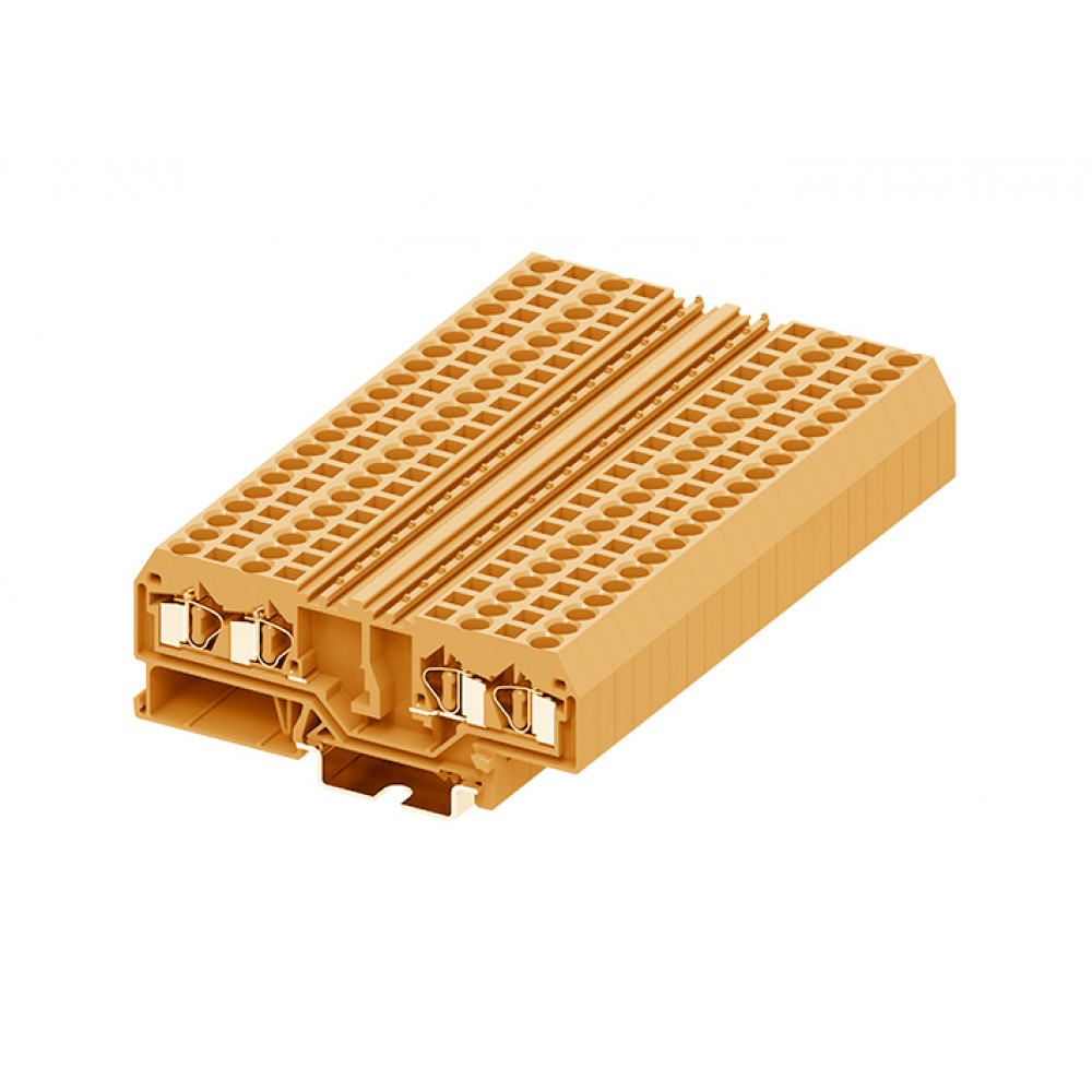 Проходная клемма, с разрывом цепи, 4 точки подключения, тип фиксации провода: пружинный, номинальное сечение: 4 мм кв., 32A, 800V, ширина: 6 мм, цвет: оранжевый тип монтажа: DIN35