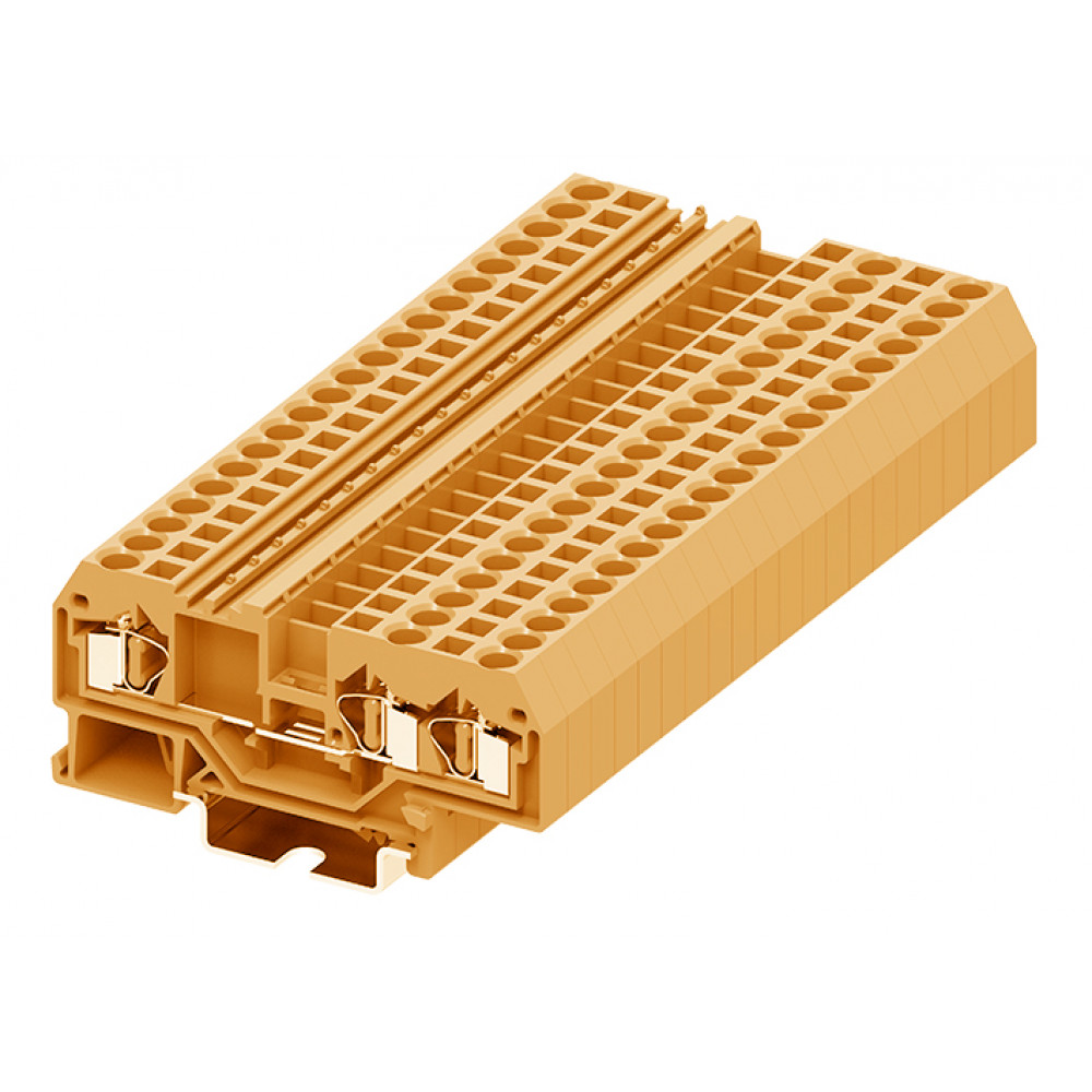 Проходная клемма, 3 точки подключения, тип фиксации провода: пружинный, номинальное сечение: 4 мм кв., 32A, 800V, ширина: 6 мм, цвет: оранжевый, тип монтажа: DIN35