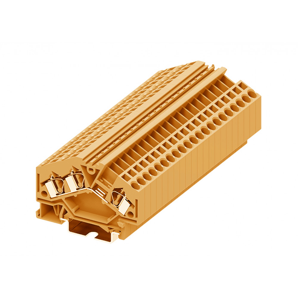 Проходная клемма, 3 точки подключения, тип фиксации провода: пружинный, номинальное сечение: 4 мм кв., 32A, 800V, ширина: 6 мм, цвет: оранжевый, тип монтажа: DIN35