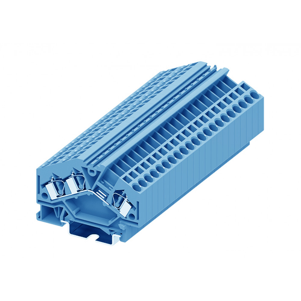 Проходная клемма, 3 точки подключения, тип фиксации провода: пружинный, номинальное сечение: 4 мм кв., 32A, 1000V, ширина: 6 мм, цвет: синий, тип монтажа: DIN35