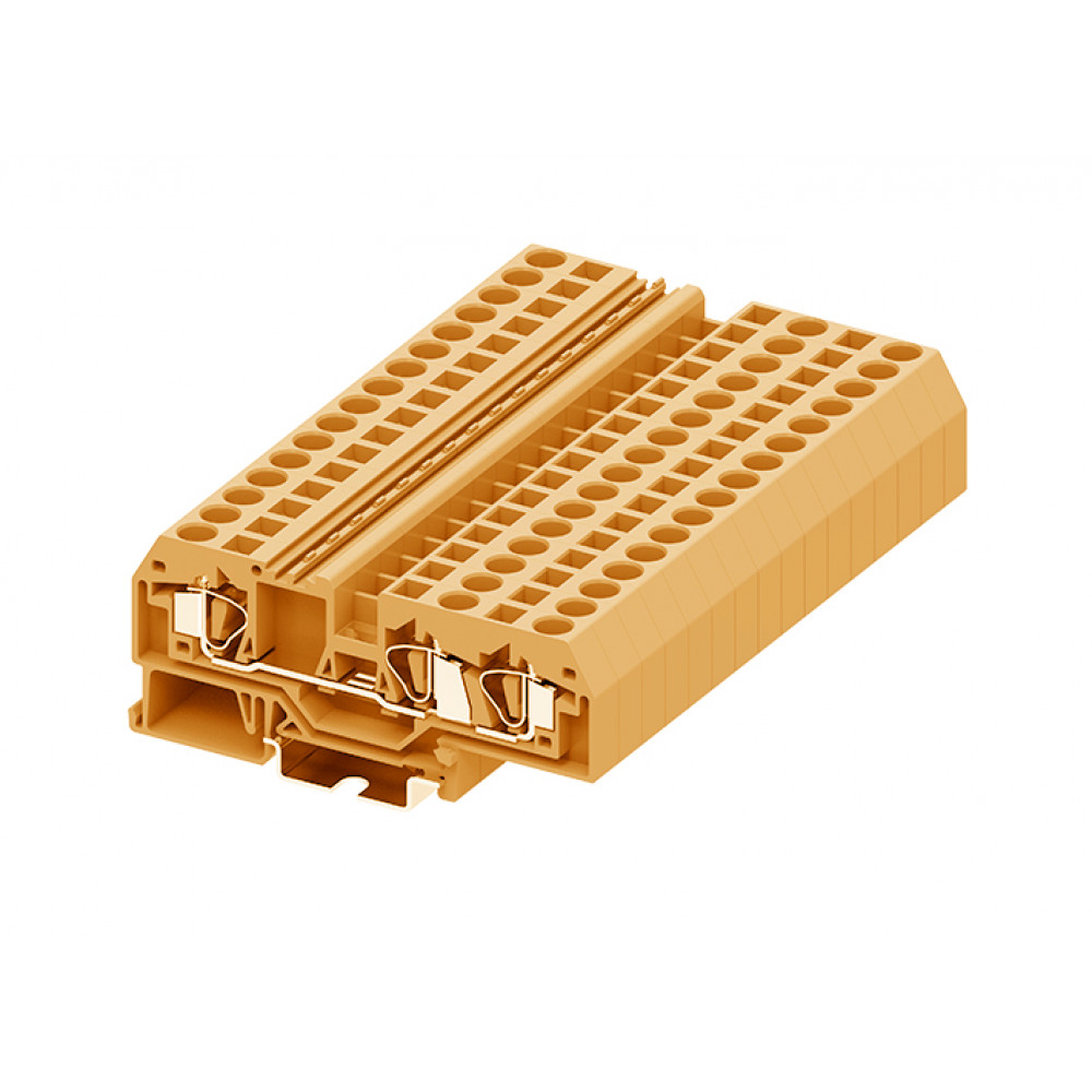 Проходная клемма, 3 точки подключения, тип фиксации провода: пружинный, номинальное сечение: 6 мм кв., 41A, 800V, ширина: 8 мм, цвет: оранжевый, тип монтажа: DIN35