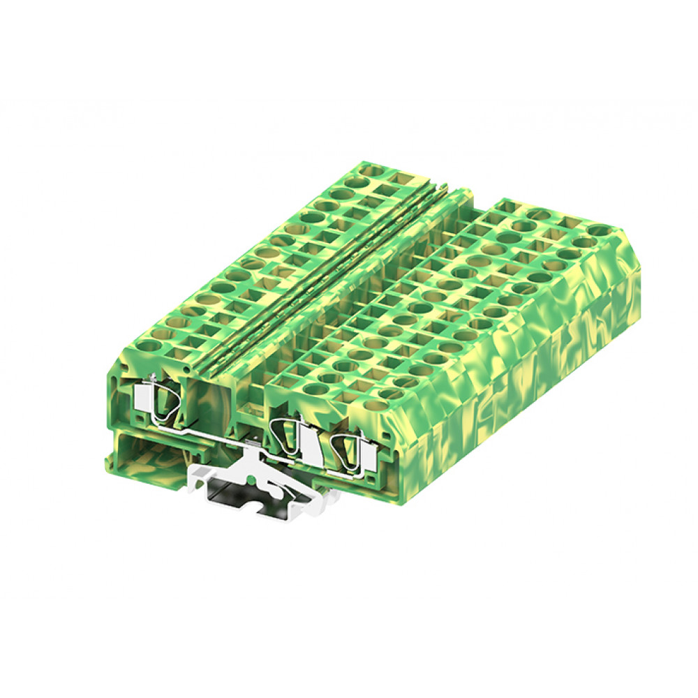 Заземляющая клемма, 3 точки подключения, тип фиксации провода: пружинный, номинальное сечение: 6 мм кв., 41A, 800V, ширина: 8 мм, цвет: желто-зеленый, тип монтажа: DIN35