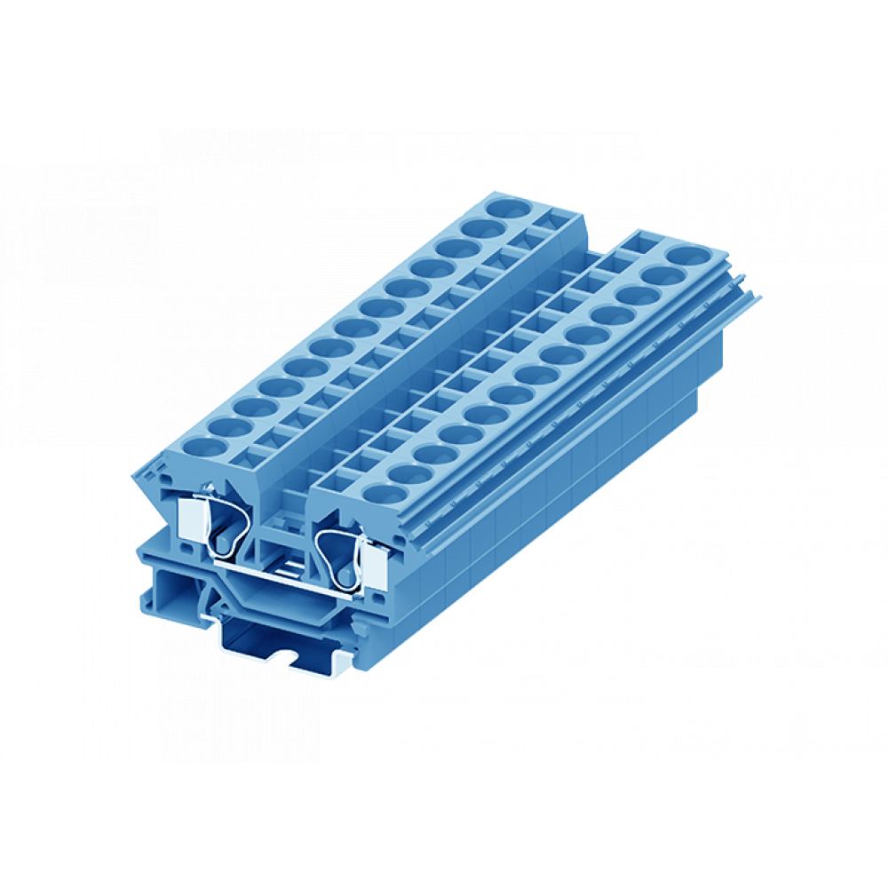 Проходная клемма, тип фиксации провода: пружинный, номинальное сечение: 10 мм кв., 65A, 800V, ширина: 10,2 мм, цвет: синий, тип монтажа: DIN35