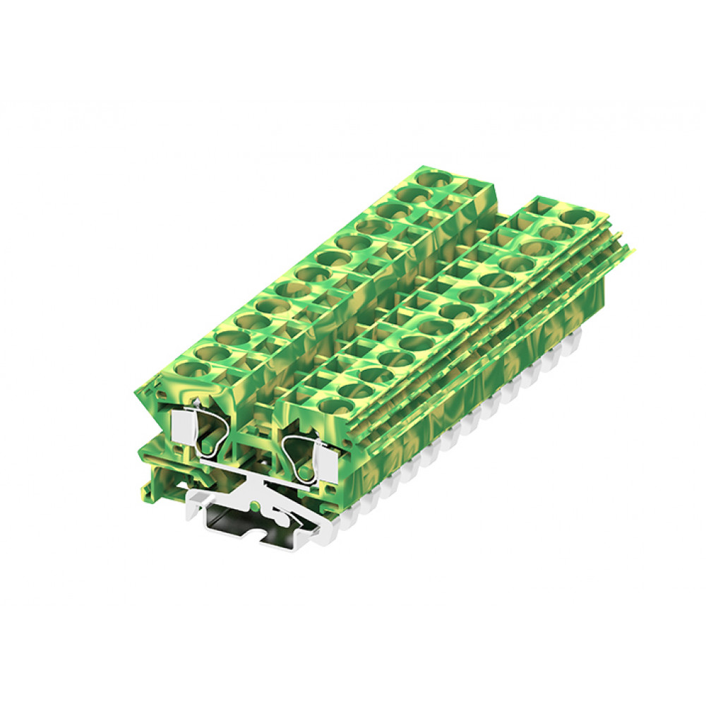 Заземляющая клемма, тип фиксации провода: пружинный, номинальное сечение: 10 мм кв., ширина: мм, цвет: желто-зеленый, тип монтажа: DIN35, стандарт GB/T14048.1,