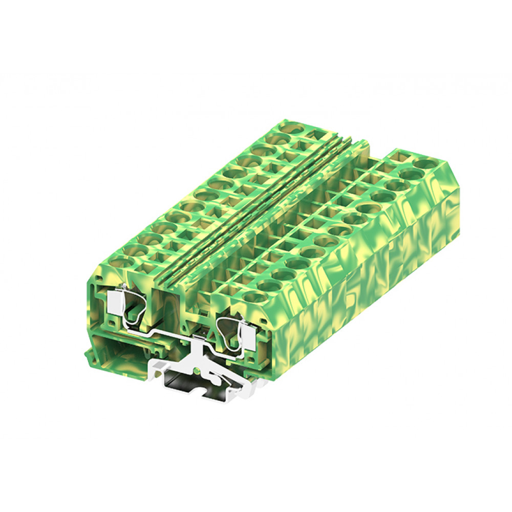 Заземляющая клемма, тип фиксации провода: пружинный, номинальное сечение: 10 мм кв., 1000V, ширина: 10,2 мм, цвет: желто-зеленый, тип монтажа: DIN35