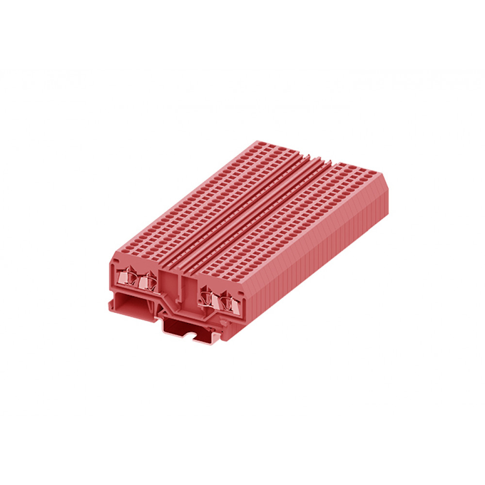 Проходная клемма, с разрывом цепи, 4 точки подключения, тип фиксации провода: пружинный, номинальное сечение: 1,5 мм кв., 18A, 800V, ширина: 4 мм, цвет: красный, тип монтажа: DIN35