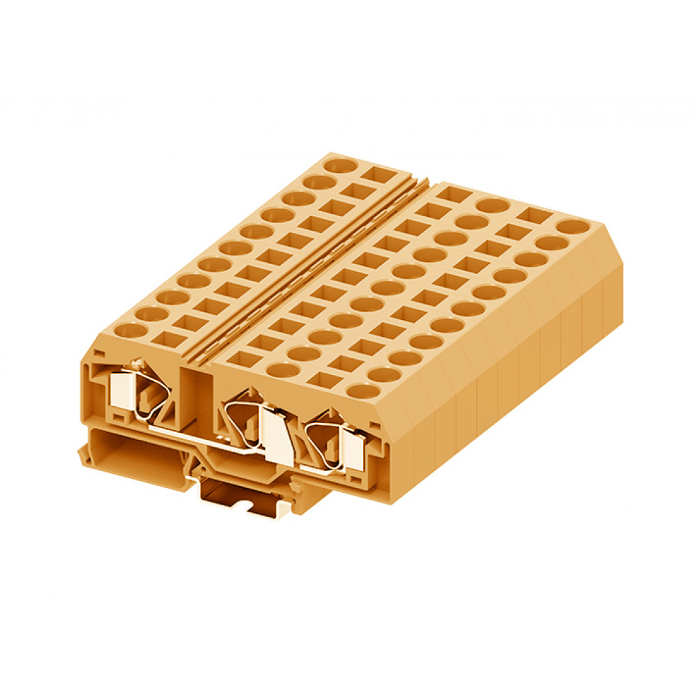 Проходная клемма, 3 точки подключения, тип фиксации провода: пружинный, номинальное сечение: 16 мм кв., 76A, 800V, ширина: 12 мм, цвет: оранжевый, тип монтажа: DIN35