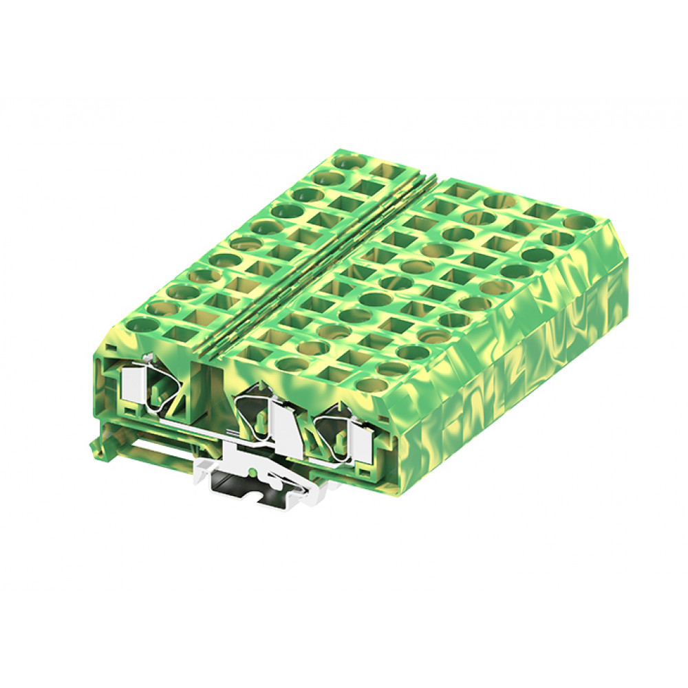 Заземляющая клемма, 3 точки подключения, тип фиксации провода: пружинный, номинальное сечение: 16 мм кв., ширина: 12,2 мм, цвет: желто-зеленый, тип монтажа: DIN35, стандарт GB/T14048.1,