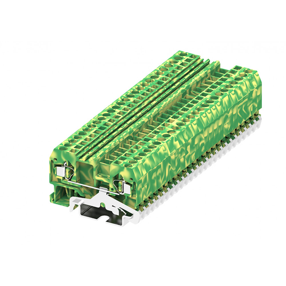 Заземляющая клемма, тип фиксации провода: пружинный, номинальное сечение: 2,5 мм кв., 800V, ширина: 5,2 мм, цвет: желто-зеленый, тип монтажа: DIN35